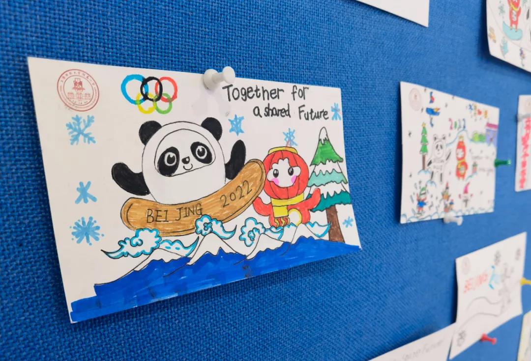 走進上海財經大學附屬楊浦區國安路小學,一張張色彩斑斕、充滿童趣的冬奧主題明信片映入眼簾。