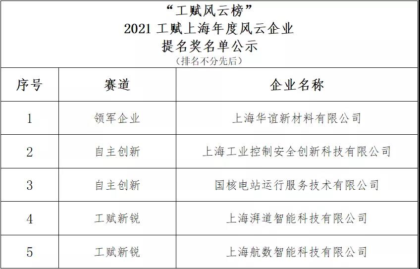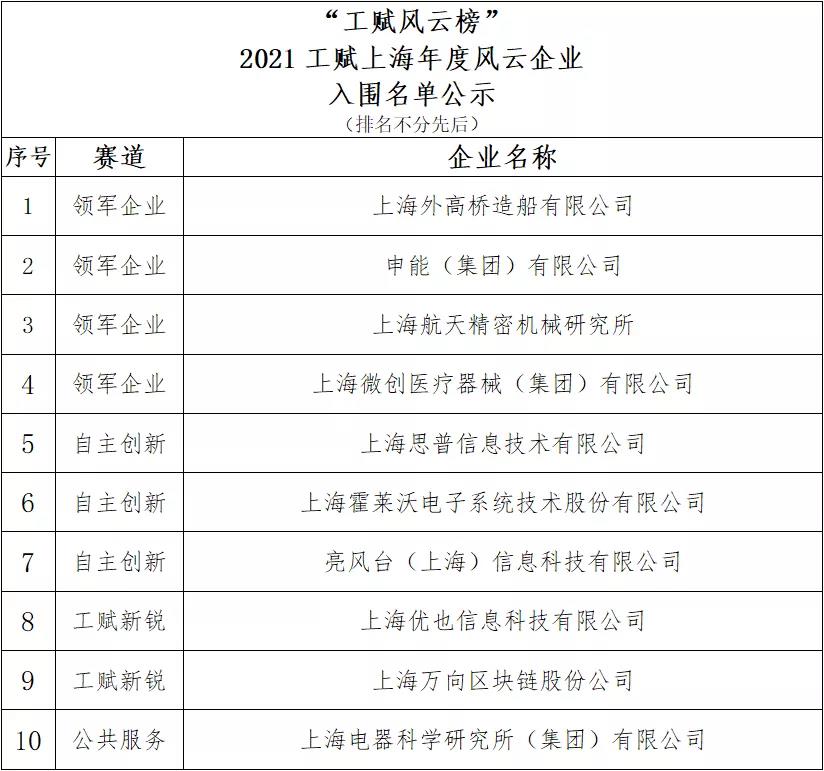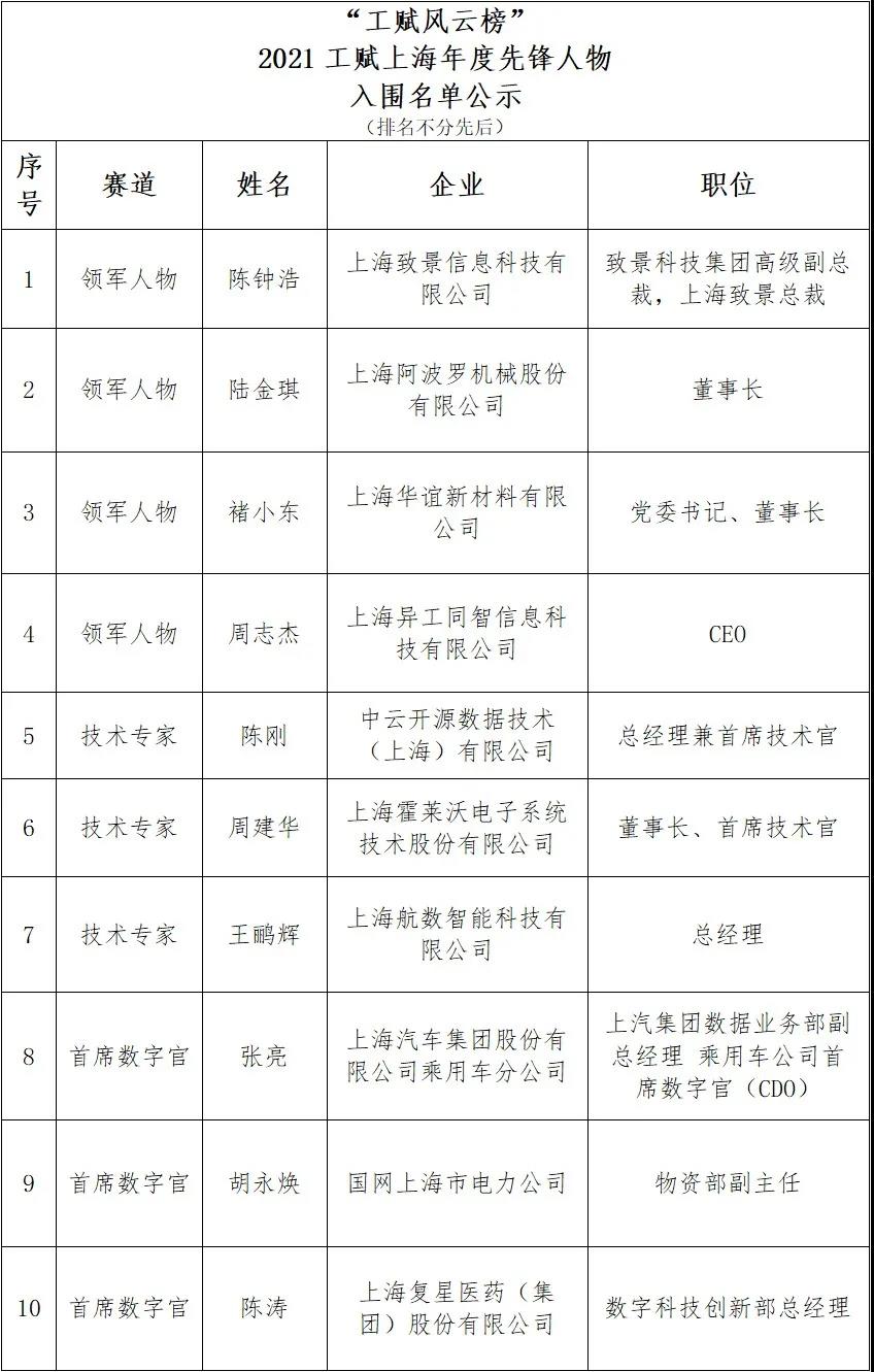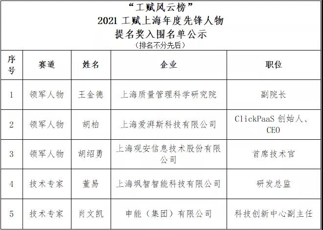 “工賦風云榜”2021工賦上海年度評選名單公示