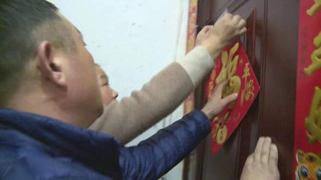 春聯、門畫貼好后,夫妻倆充滿了對新一年的美好期待。他們說,如今格外珍惜這一居住空間,時常收拾打掃。妻子做家務時,丈夫老黃就跟著打打下手。
