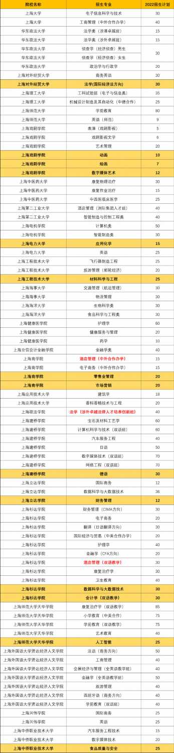 上海杉達學院數據科學與大數據技術專業也是首次參與招生,還有上海師范大學天華學院的人工智能專業。