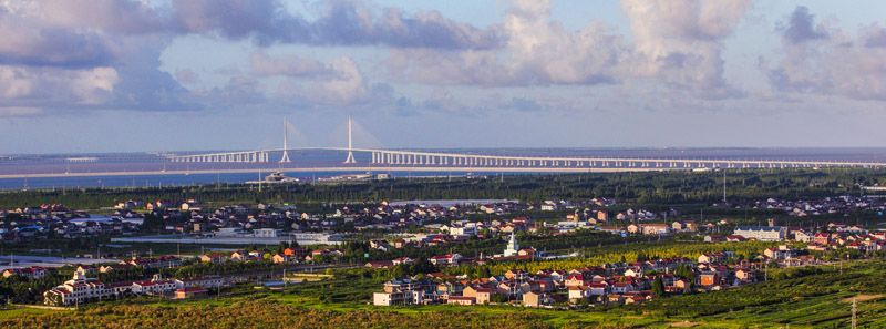 從崇明島遠眺長江大橋。崇明新聞辦供圖