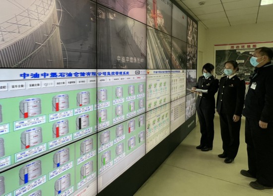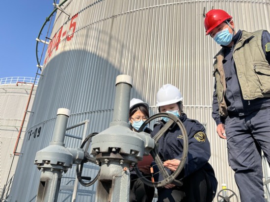 虹口海關對上海中燃燃料油液體保稅倉庫進行日常巡庫及安全巡庫。(周宛瑩攝)
