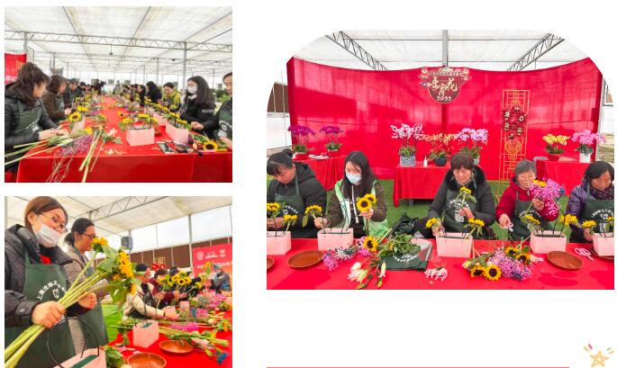 完成趣味問答后,花卉基地的花藝師為大家分發了花材,繽紛的色彩瞬間填滿了整個花棚。經過花藝師的耐心指導,大家逐漸掌握了插花的要領,有條不紊地將主花和輔花放入花盆的合適位置,花盆被裝點得分外美麗。