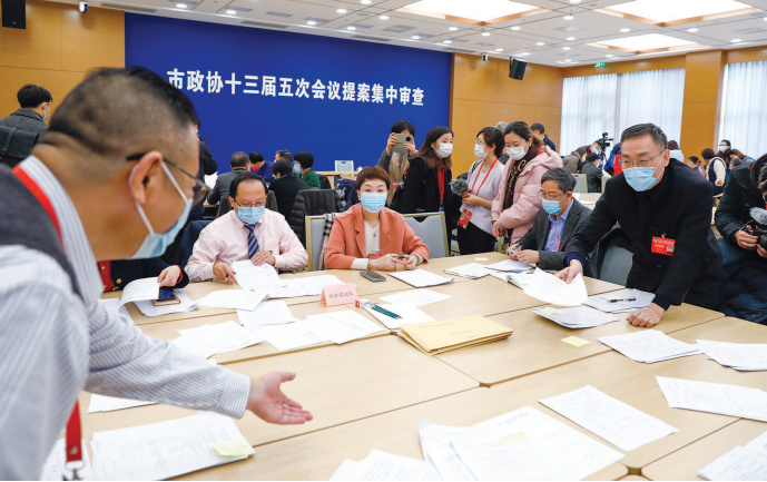 ▲昨天上午,市政協十三屆五次會議開展提案集中審查。 本報記者 葉辰亮攝