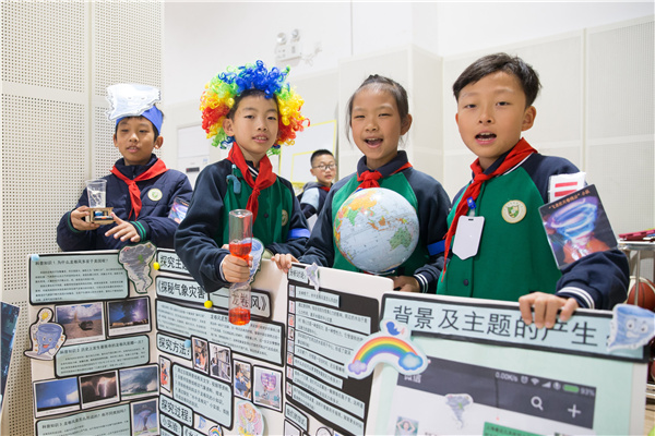 這是在五年級學生中開展的“氣象研究員”系列活動成果展示。他們通過自主開展文獻查閱、網絡調查等活動尋找感興趣的氣象科普知識點,同時基于知識點開展科普實驗。還有一部分五年級學生將零散的科學探究方法進行整合,開展科普課題研究,綜合解決氣象科學問題。