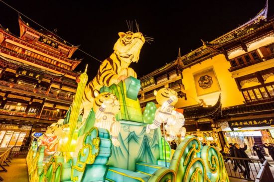 上海豫園年味濃!9米高生肖虎燈組矗立,非遺體驗天天有