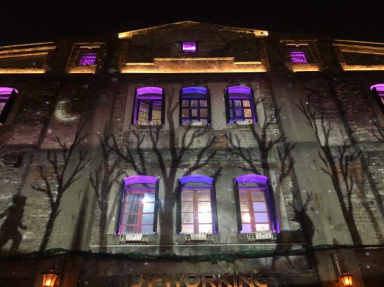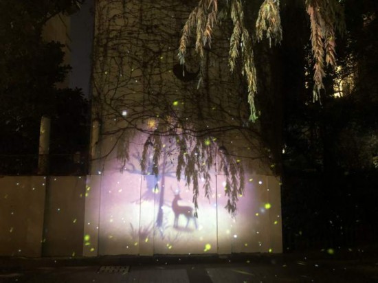 從南蘇州路1295號的有為公社開始,是黃浦蘇州河夜景的第一個景點——夢與希望。每一扇窗臺上都布置了燈光,從紫藤廊架上投射出來的光影在建筑墻面上交替出現孩子、鹿、鴿子等一些童年意向的畫面元素,讓人重拾兒時記憶,締造了一個夢幻場景,仿佛來到哈利波特的魔法世界。