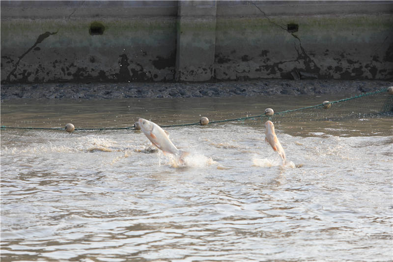 不多久,便可見一尾一尾的魚兒在漁網里,四處游弋著、翻滾著、跳躍著。
