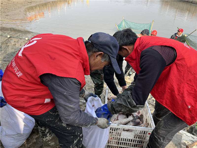 南橋暖日子,人人都有份!今年,華嚴村分給戶籍在本村的60-69歲老人每人2條鳊魚;70-89歲老人每人3條鳊魚;90歲以上老人1條草魚。同時,華嚴村還向鎮殘聯捐贈了150份共計1000斤的鮮魚禮包,由鎮殘聯代為發放到了殘疾人手中。同時,為南橋鎮困境青少年群體準備了30份約200多斤魚,為志愿者準備了50份約400斤魚,在志愿服務中傳遞暖心關愛,在文明實踐中共享發展成果,讓更多市民群眾感受南橋溫度。