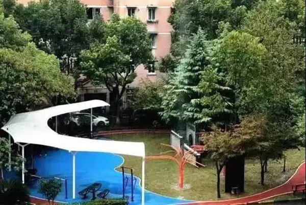 “老少同樂坊”采用透水地坪搭建240平方米健身廣場,通過彩色的透水地坪吸納雨水滲透到地下,便利居民出行活動。