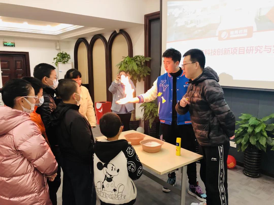 小朋友們則對現場的科學試驗更感興趣,在指導老師的帶領下,體驗了“手掌起火”的小游戲。實際上,手掌起火的原理是利用肥皂泡沫暫時保留了部分可燃氣體的緣故。對于小朋友來說,“起火”現象令人驚奇,也燃起了大家對科學的興趣。