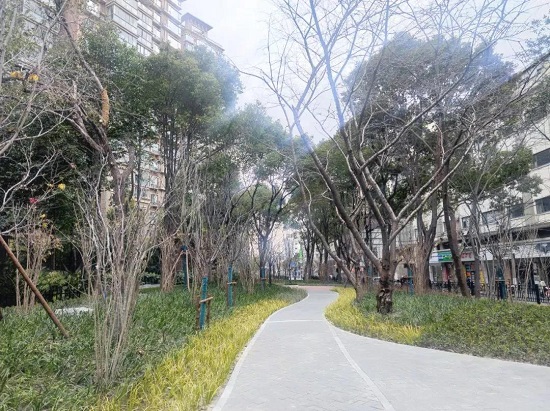 在布局上,昆明路新增出入口,使內部人行交通形成環線;鋪設石材步道,豐富游覽路線,居民活動的停留空間大大增加了。