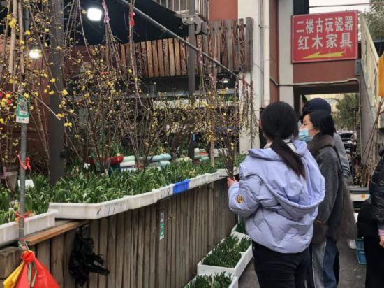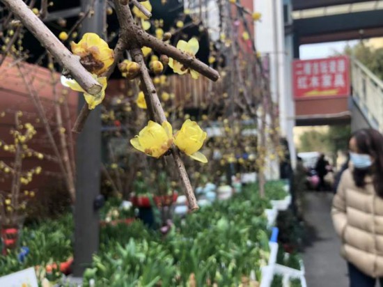 花市里的蠟梅:30-80元一枝,從外地進貨