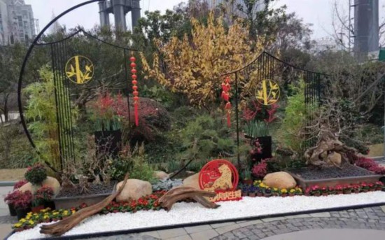 真如公園蠟梅展共展出各品種的1000多株地栽蠟梅和70多盆造型蠟梅盆景,白墻黛瓦之間,奇石流水潺潺,曲折蒼勁的蠟梅枝條上,薄如蟬翼的黃色花瓣小巧可愛。