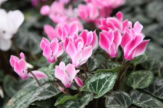 仙客來株型美觀、花朵繁茂、花色艷麗,有的種類還具有甜蜜的香味,備受廣大市民的喜愛,作為熱門的年宵花卉,人們常常會購買一盆點綴花架、幾案、書桌等處。仙客來最吸引人的地方,在于它別致的花形:它的花瓣在尚未開放時與其他花朵沒有什么差別,等開放后卻會強烈反折90-180度,變成一個“僧帽”,又如一只只可愛的兔耳,因此,仙客來又被形象地喚作又名兔耳花、翻瓣蓮。
