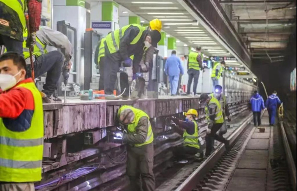值得一提的是,為確保在夜間有限的施工時間里順利、高效地更換新型站臺安全門,工程啟動前,施工人員就在淞虹路站站臺處精細測量、提前打孔布線,使得更換期間,即使新舊站臺安全門共用也基本做到嚴絲合縫,讓乘客安全出行。