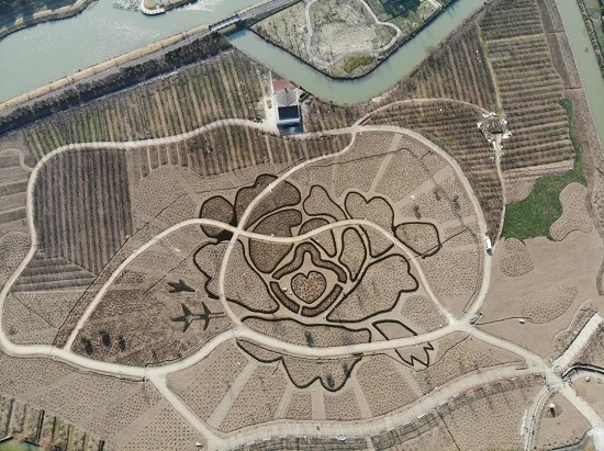 來到廊下郊野公園生態園的南側空地,上海灣區牡丹園已經初具雛形。高空俯瞰,造型精巧優美,仿佛一朵盛開的牡丹,F場工作人員介紹,目前園區內,5萬株牡丹已經全部移栽完成,該項目預計1月下旬可整體完工。