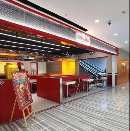 沿著虹橋商圈的地下通道一路向南步行,來到SOHO天山廣場和虹橋南豐城的連接處,可以看到這里新添了一處迷你“美食街”,其中新開不少備受市民喜愛的餐飲店。