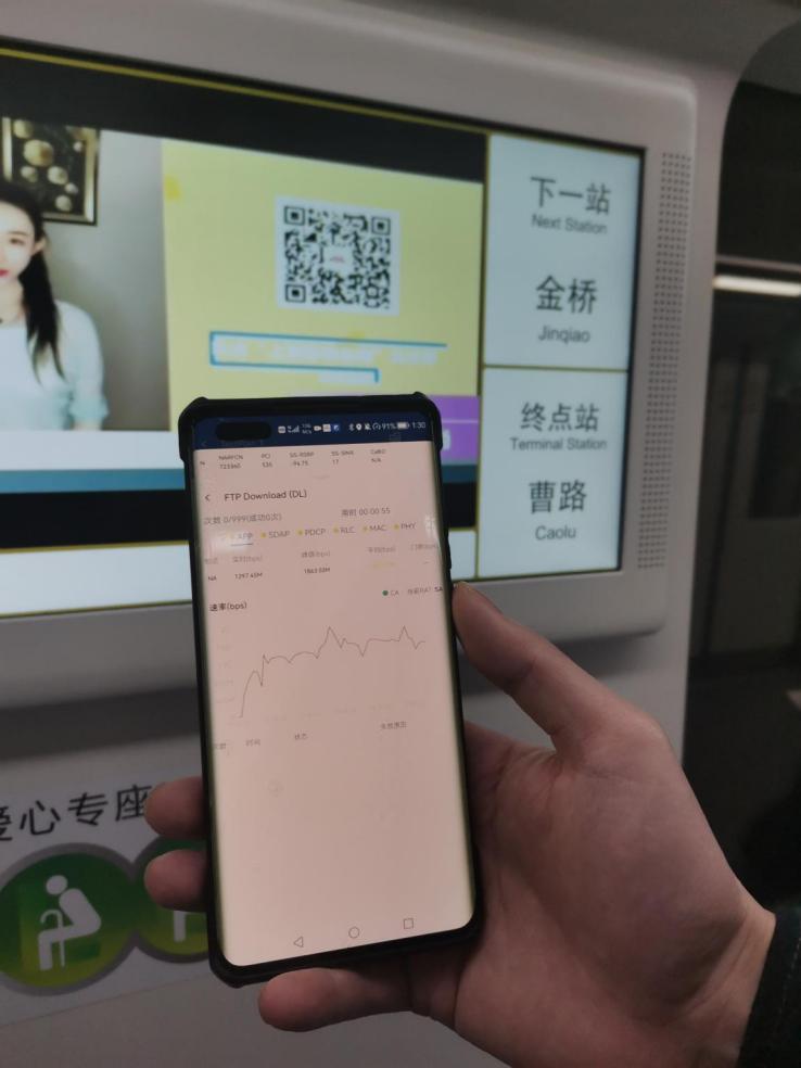 上海移動地鐵9號線4.9GHz特型天線和2.6GHz漏纜CA速率測試