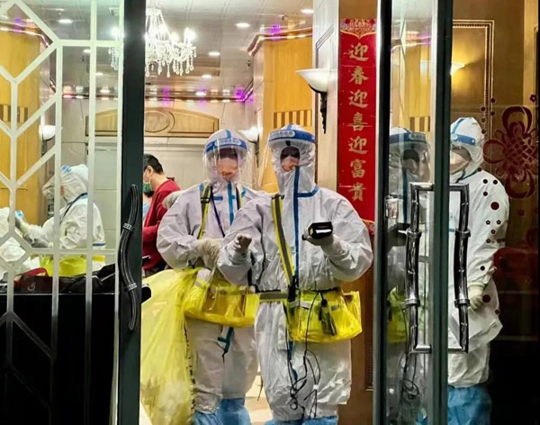 早上8點10分,新華街道社區衛生服務中心的醫護人員來到某居民區,進行上門核酸采樣。