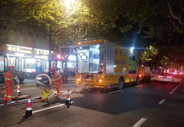 記者在施工現場看到,一輛寫有“永達市政”的大型搶修工程車在夜色中進行作業施工,在燈光下異常亮眼。原來這臺大型搶修工程車上裝置了德國IST Power LIGHT紫外光固化修復設備,是一輛承載了下水管道無開挖修復技術的市政“戰車”。