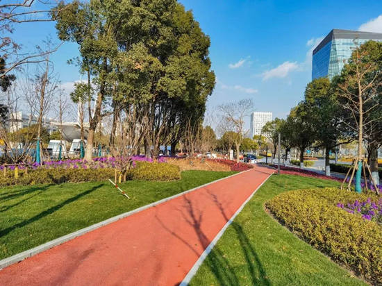 “改造前的海港大道綠帶景觀缺少獨特性,植物種植雜亂無章!睒影宥雾椖控撠熑隧n蒙蒙介紹。在綠帶步道打造過程中,他們將其定位為一條“四時花開,終年常綠”的健康步道,通過種植落羽杉、烏桕等色葉喬木、紅梅、櫻花等花灌木以及金葉大花六道木、西洋杜鵑等地被組成的花境,輔以造型植株進行點綴,形成錯落有致、色彩斑斕的植物景觀帶,無論是春夏秋冬,走過都會有一抹亮色映入眼簾。