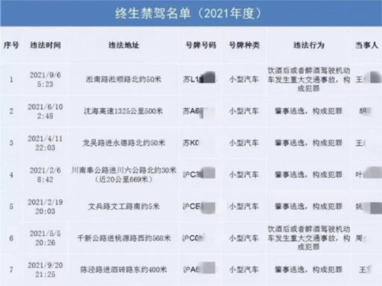 原標題:滬公布一批終生禁駕名單