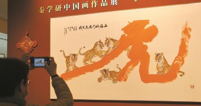 昨天,觀眾在嘉定陸儼少藝術院觀看《虎虎生威》畫展。