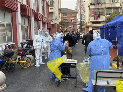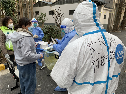 1月13日凌晨,根據防疫部門要求,普陀某小區需進行封閉篩查。熟睡中的老何接到單位通知后,第一時間趕到小區!榜R上就有上班的居民要出門了,我必須馬上進去做好解釋工作”“你們放心,我身體沒問題,作好長時間‘作戰’準備了”,簡單和同事交代幾句后,老何換上防護服,進入小區配合防疫部門開展篩查工作。