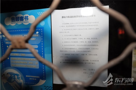 隔壁沿街商鋪張貼的告顧客書和疫情防控承諾書。