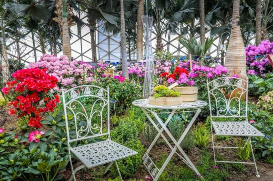 此外,還分別以紅色系、藍紫色系、粉色系、白色系、黃色系高山杜鵑布置家庭園藝小場景,展示北京、上海、廣州、成都、喀納斯地區5地的地域特色及溫馨的家庭氛圍。整個展示區從“祖國大地不同地域家庭的幸福生活”和“幸福小家匯聚為祖國的好山好水”兩個方向表現家與國的關系,體現出宜情宜景的家國情懷。
