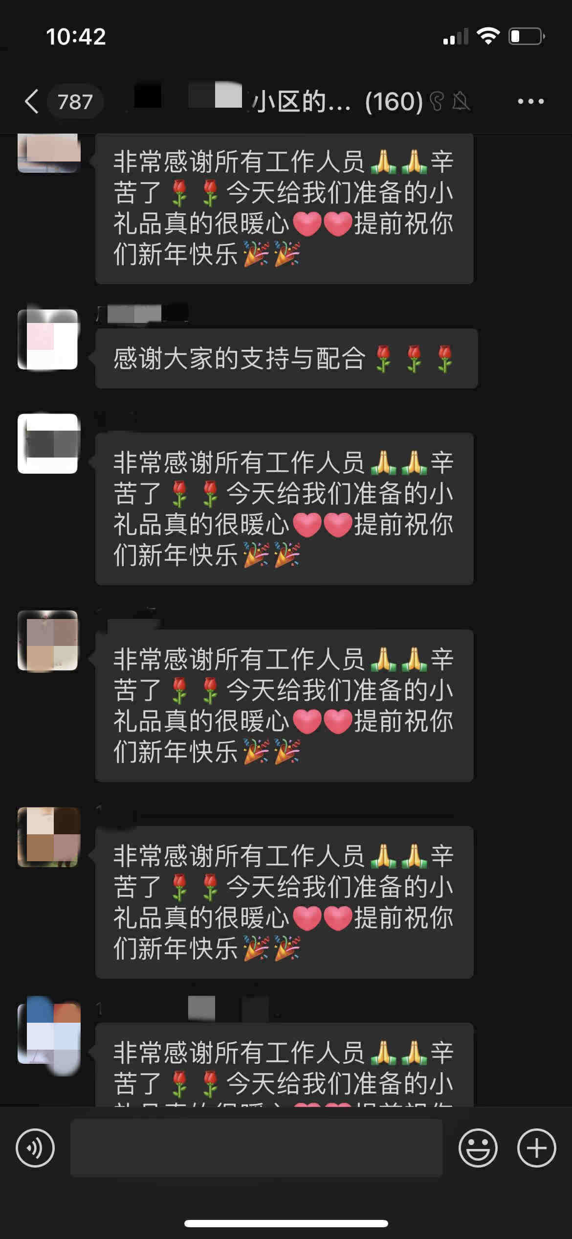 第四次核酸結束,居民紛紛在微信群表示感謝。誠禮居民區供圖