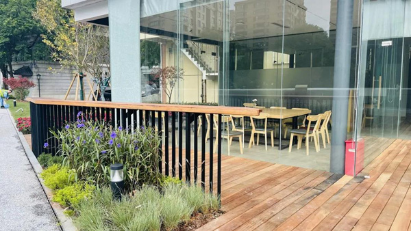 據了解,桃李園景點的異形木質座椅風格與蘇州河相呼應,像極了緩緩流淌的河水,而它的打造也是頗費了一些功夫,又是一處考驗時間、工藝和耐心的精細化施工。據了解,長度約30米的木質座椅,是由近3000根木條組成,每一根木條也是經定制后由人工打磨、人工拼接,而為了呈現動感蜿蜒的風格,每一根木條間隔的縫隙要完全一致,不容有偏差。