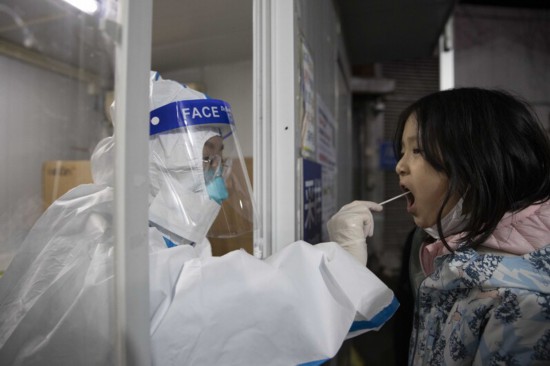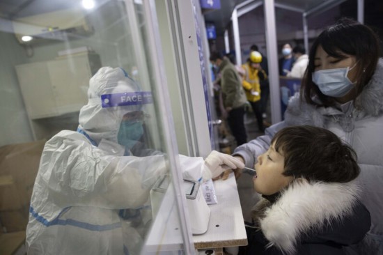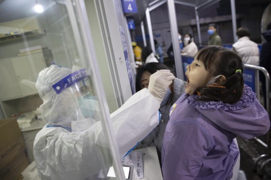 家長帶著小朋友來核酸檢測。