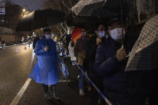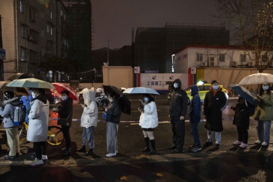 直擊上海24小時核酸檢測點,市民雨夜排起長龍