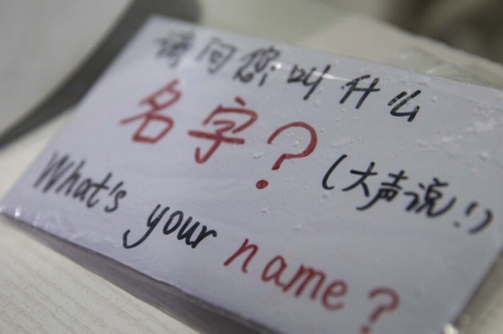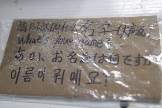 護士自制的有多國語言的提醒牌。