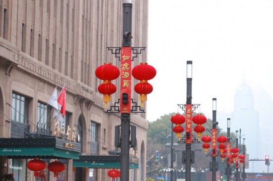 大紅燈籠、中國結、虎年吉祥語……南京路步行街兩邊的路燈電桿上,煥然一新的布置讓濃郁年味撲面而來,將“中華商業第一街”裝點的更加亮眼奪目,用最好的狀態迎接八方賓客的到來。