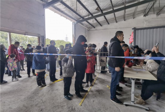 1月29日一早,記者來到葭帆日用百貨店,看到前來購買煙花爆竹的市民早已排成了長龍,松江公安分局治安支隊和屬地榮樂東路派出所的民警一邊進行現場秩序維護,要求市民間隔一米有序排隊,一邊引導進行微信小程序實名登記并發放安全宣傳單頁。針對登記地址位于外環線以內的購買者,指派專人進行禁燃禁放提醒。