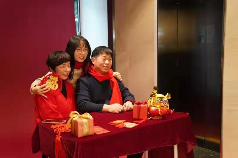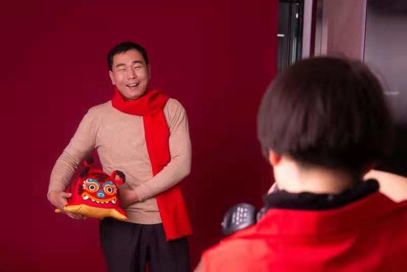 “雖然春節回不了老家,今天能來這里聚聚感覺特別開心!薄按环偶,我們也不放假,我打算干到大年三十!”“今天帶老婆孩子一起來拍形象照,希望虎年平平安安,順順利利!”