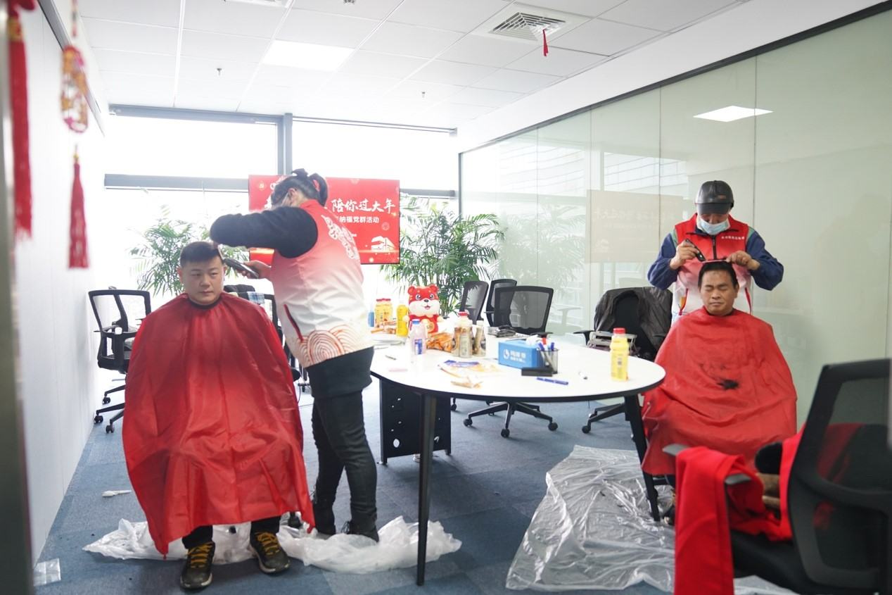 這場“新春不孤單 陪你過大年”集卡司機虎年納福黨群活動,由區委組織部、吳淞街道和鴨嘴獸公司黨支部共同策劃,為集卡司機們帶來了可口茶歇、形象打造等貼心服務,在春聯福字、虎年公仔的映襯下,黨群陣地的過年氣氛格外濃厚。