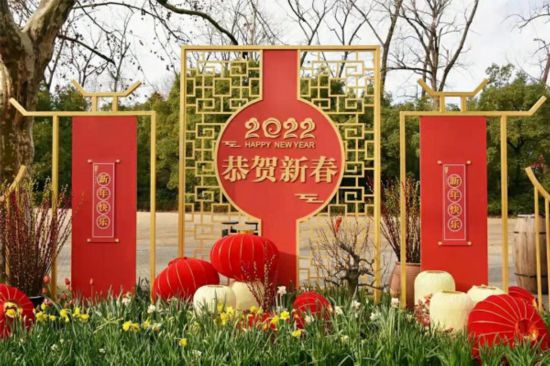 楊浦區在常態花卉景觀調整、補種的基礎上,結合新年主題,在楊浦公園山水大盆景處打造了迎新主題景點,布置各類花卉植物約1200盆。浦東新區的60座公園,則掛上了紅燈籠、春聯、趣味貼紙、中國結等,并于去年12月20日之前完成了草花更換。