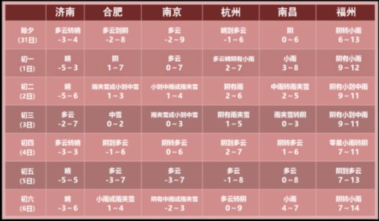 1、春節前期和6日華東部分地區有明顯雨雪天氣,雨雪天氣、需防范道路積雪結冰、路面濕滑對春運的不利影響;如有出行計劃,及時關注路況信息和最新的天氣預報。