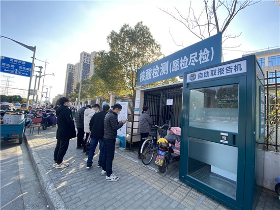 周浦醫院又率先將“愿檢盡檢”進入口移至院區外,并配備了自助取報告機(龔莎 攝)