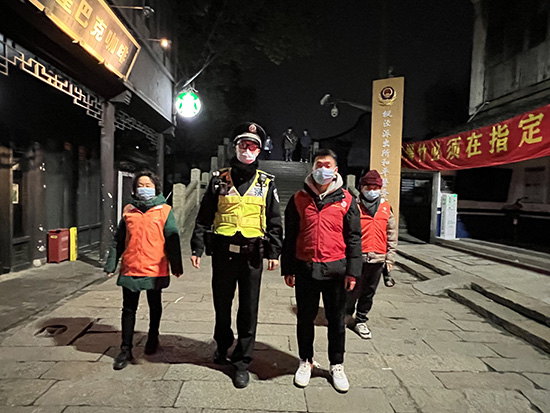 晚上21時許,忙碌了一天的金杰又馬不停蹄地帶領著居委會干部、平安志愿者走上古鎮街頭,開展煙花爆竹禁燃禁放巡查管控工作!盀榱溯爡^平安,再苦再累也是值得的!边@是金杰的承諾,更是上海5萬余名公安民警的心聲。
