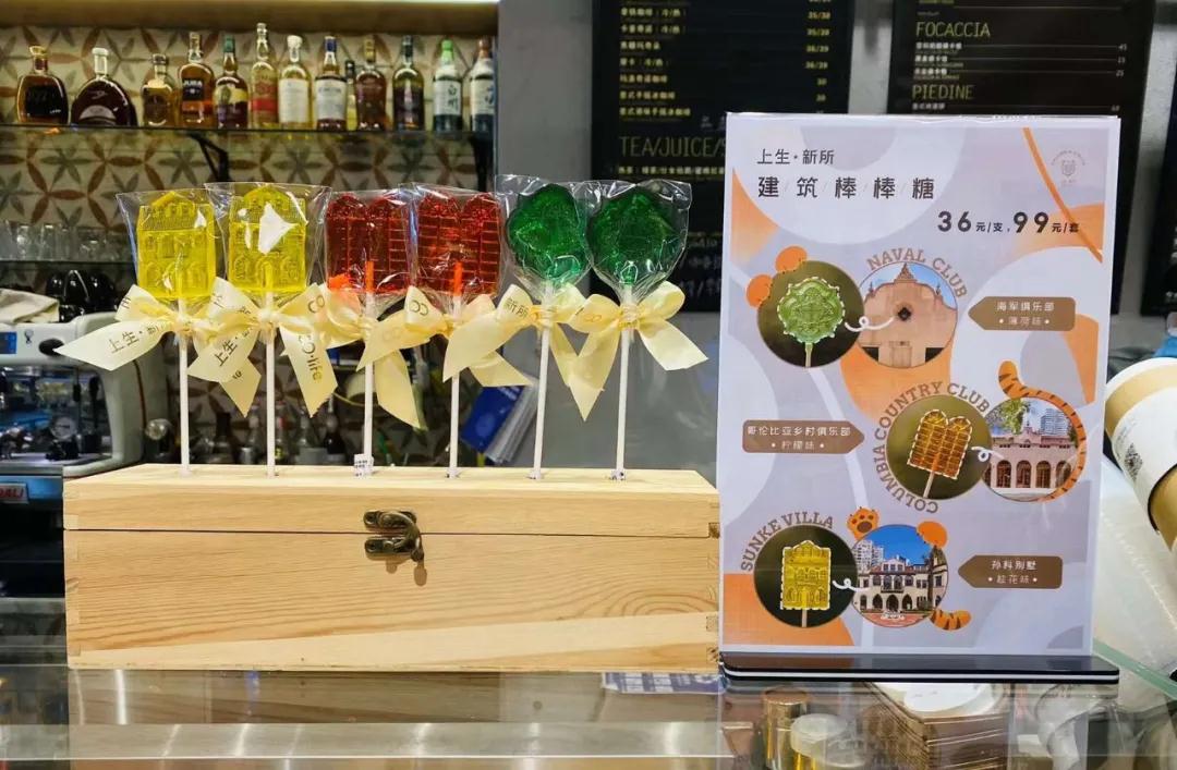 “老建筑系列”復刻棒棒糖由上生·新所與萬科CO·life聯名出品,糖果造型提取了建筑肌理和亮點設計,味道也與建筑有所聯系。