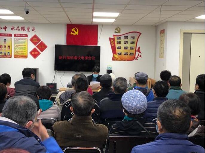 第二招,深入社區聽建議。小區各樓棟面積、戶數、群眾年齡結構等各不相同,通過召開新月福邸樓組長會議,邀請居委會、業委會、物業公司一同參加,第一時間傳達分析加裝電梯政策,就如何做好這項工作進行商討。