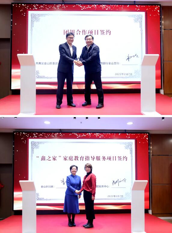 ▲現場,團銀合作項目、“鑫之家”家庭教育指導服務項目、公共文化活動供應服務合作項目等順利簽約