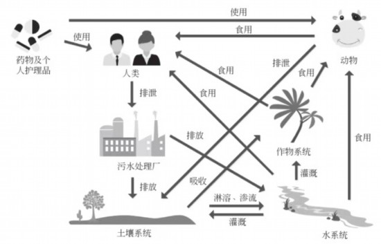 人體未代謝吸收的藥物成分通過尿液、糞便等形式重新進入水環境;