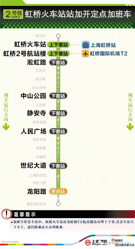 注意返程新信息!今晚2號線虹橋火車站加開定點加班車