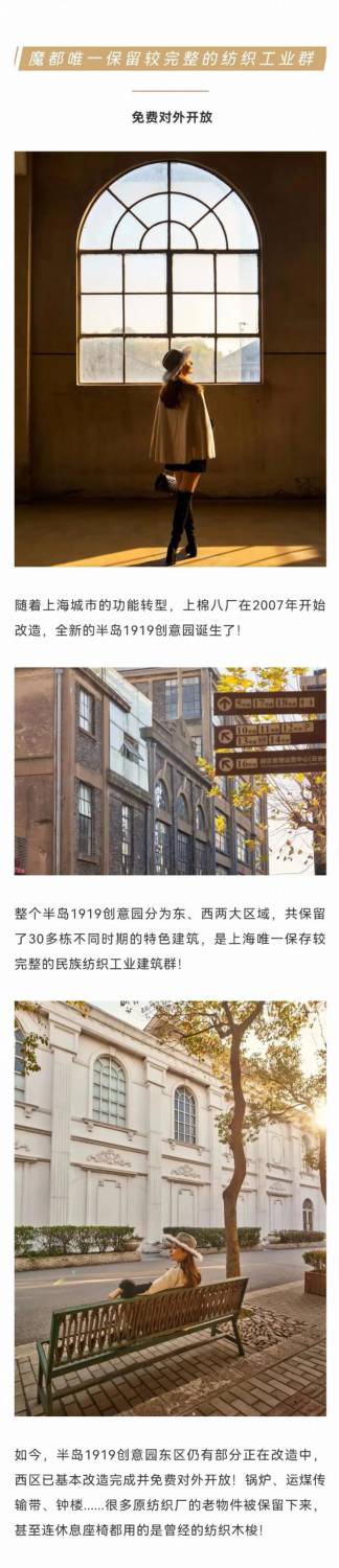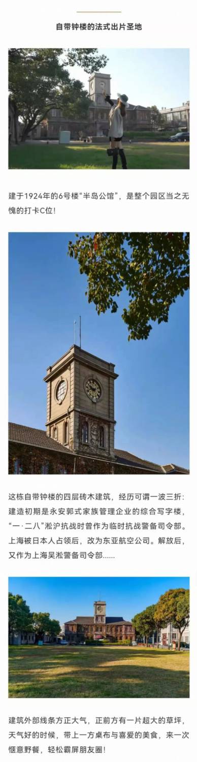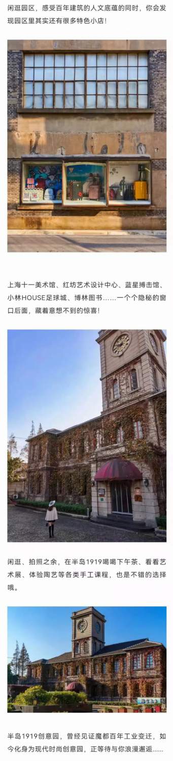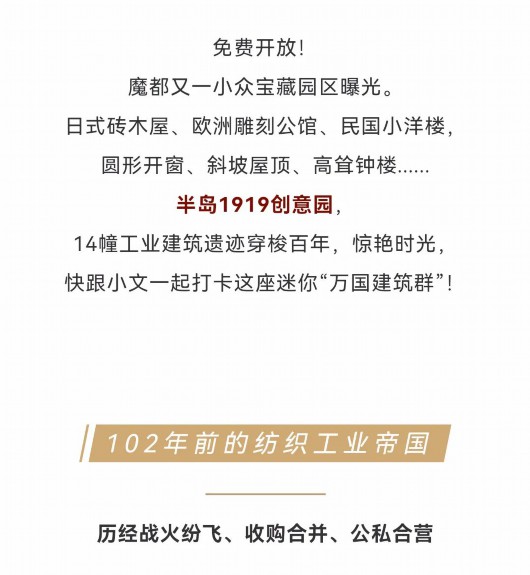 免費開放!上海又一小眾寶藏園區曝光。日式磚木屋、歐洲雕刻公館、民國小洋樓、圓形開窗、斜坡屋頂、高聳鐘樓,半島1919創意園,14幢工業建筑遺跡穿梭百年,驚艷時光,一起打卡這座迷你“萬國建筑群”!